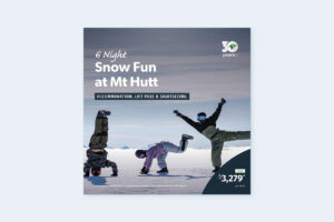 The whole family will ski one of NZ’s best kept secrets, Mt Hutt. With fewer crowds and a unique winter experience at Opuke Thermal Pools, this 6 night holiday package is the ultimate family winter escape.
